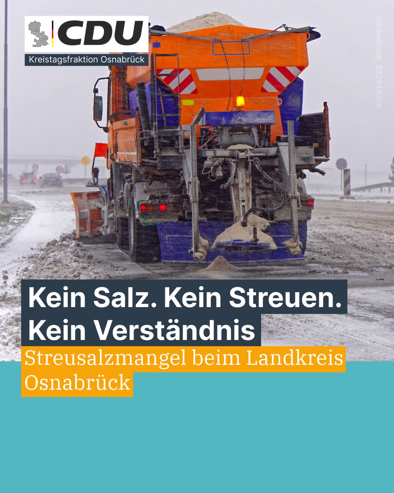 mehrKein Salz. Kein Streuen. Kein Verständnis. ❄️🧂 Die CDU-Kreistagsfraktion zeigt sich angesichts des Streusalzmangels im Landkreis Osnabrück besorgt über die Verkehrssicherheit und fordert Aufklärung sowie mehr Transparenz von Kreisverwaltung und Landrätin. "Dass es mitten im Winter zu einem Engpass beim Streusalz kommt, ist für uns nicht nachvollziehbar. Eine vorausschauende Planung sollte gerade in einem Flächenlandkreis wie Osnabrück selbstverständlich sein", erklärt der Vorsitzende der CDU-Kreistagsfraktion, Johannes Eichholz. "Es ist Aufgabe der Landrätin, rechtzeitig sicherzustellen, dass der Landkreis gut vorbereitet in die Wintermonate geht. Hier wurde offenbar zu spät reagiert", so Eichholz weiter. "Wir danken allen Mitarbeiterinnen und Mitarbeitern des Winterdienstes, die unter schwierigen Bedingungen ihr Bestes geben. Jetzt gilt es, die Situation kurzfristig zu entschärfen und langfristig dafür zu sorgen, dass sich ein solcher Engpass nicht wiederholt", betont Johannes Eichholz abschließend. Gleichzeitig der Appell an alle Verkehrsteilnehmenden: vorsichtig unterwegs sein! 🚗🚲🚶♀️ #winter #2026 #salz #straßen #osnabrück
